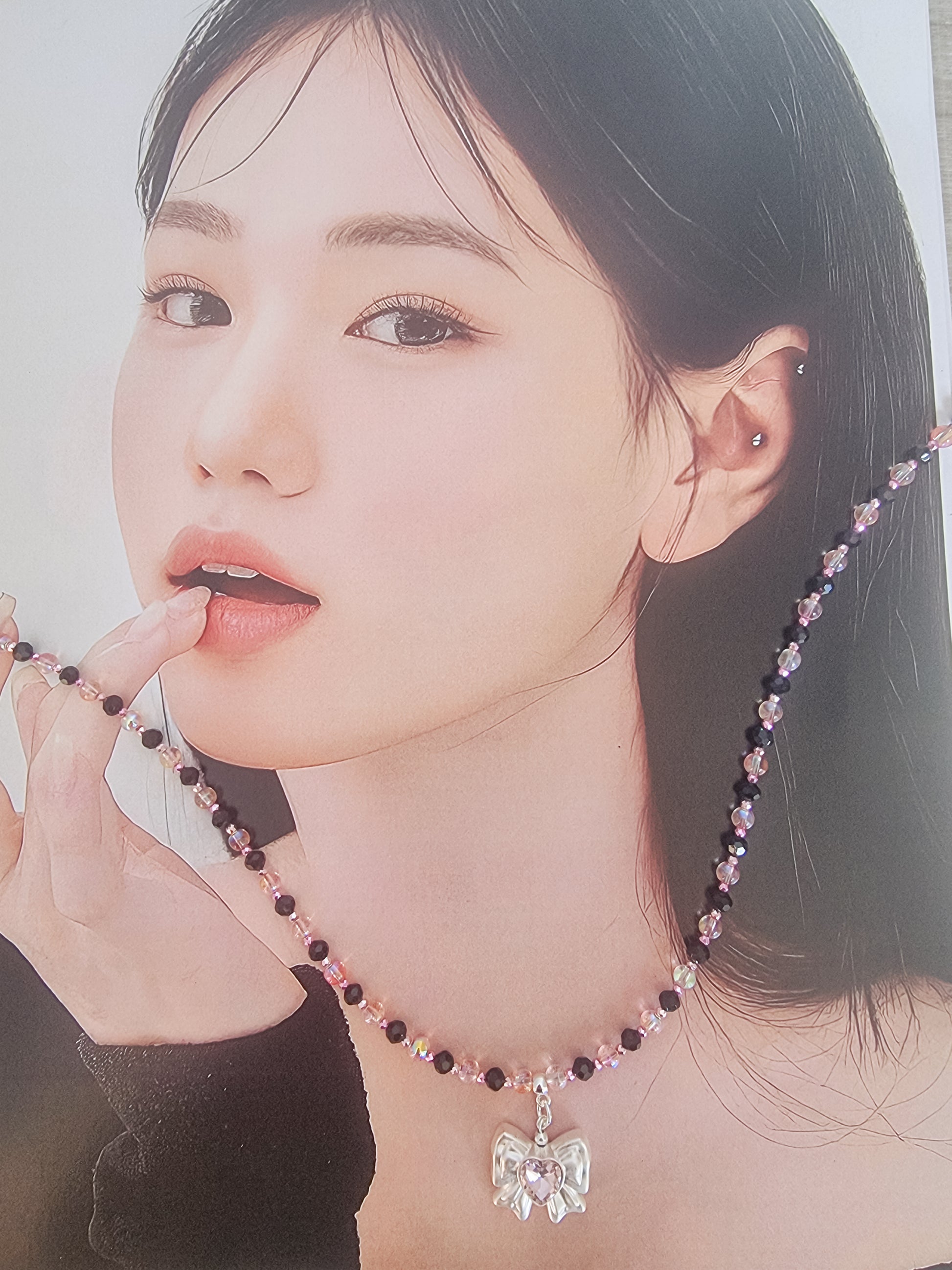 Black pink ribbon necklace