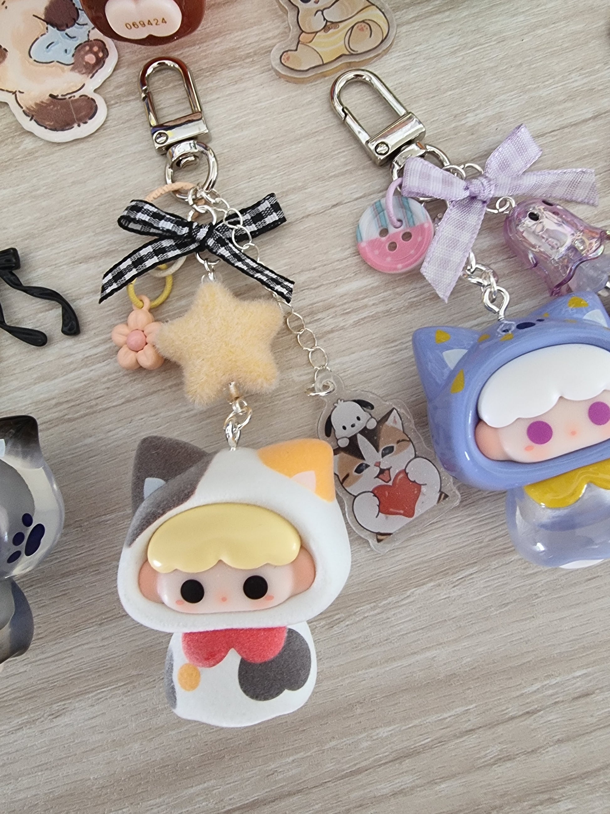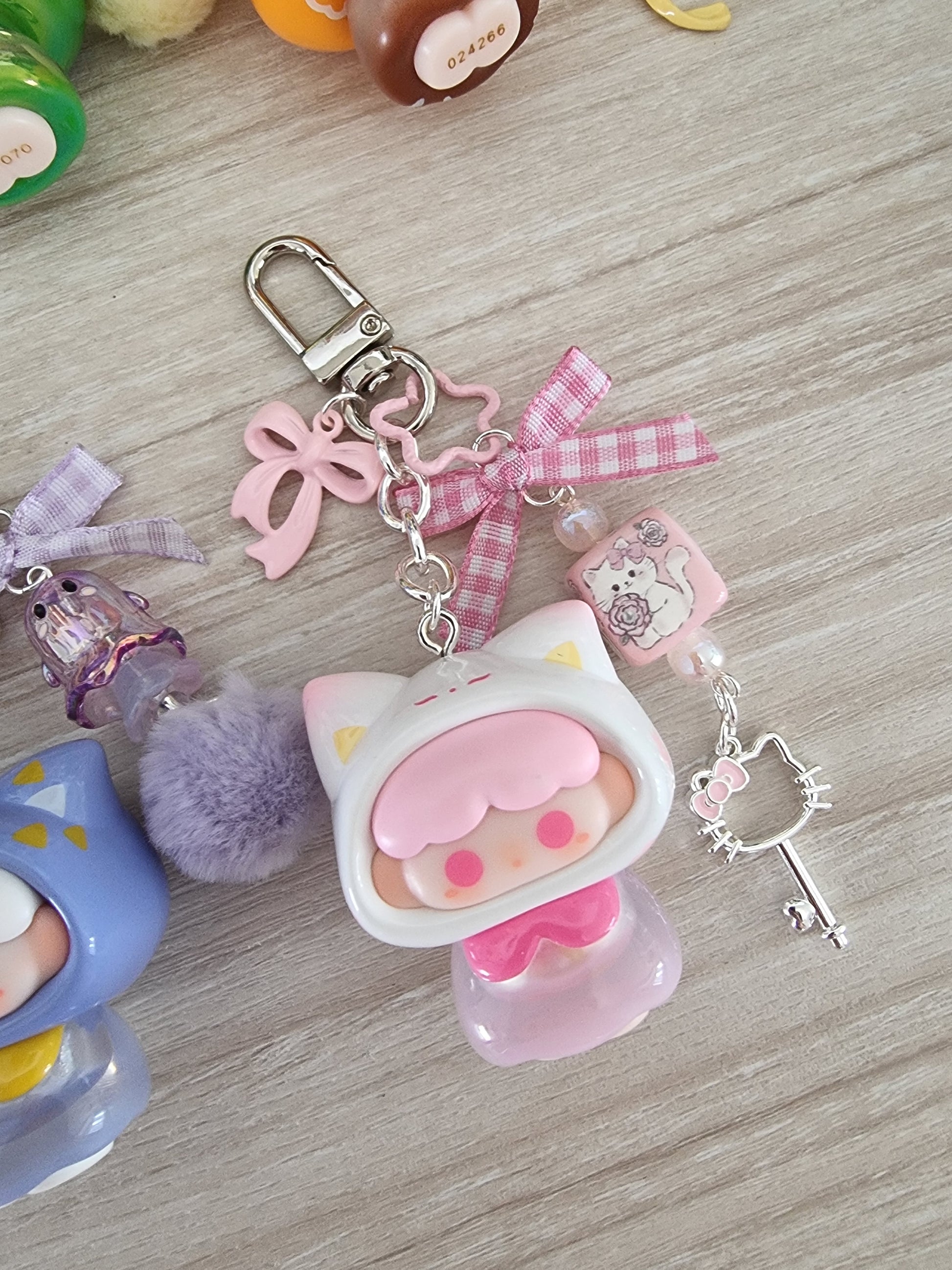 The Momoka keychain features a fun and colorful character wearing cute animal hoodies, bringing playful charm to your everyday accessories. Its vibrant design adds a joyful pop of color to your keys or bag, making it the perfect little companion for animal lovers who enjoy a touch of whimsy.