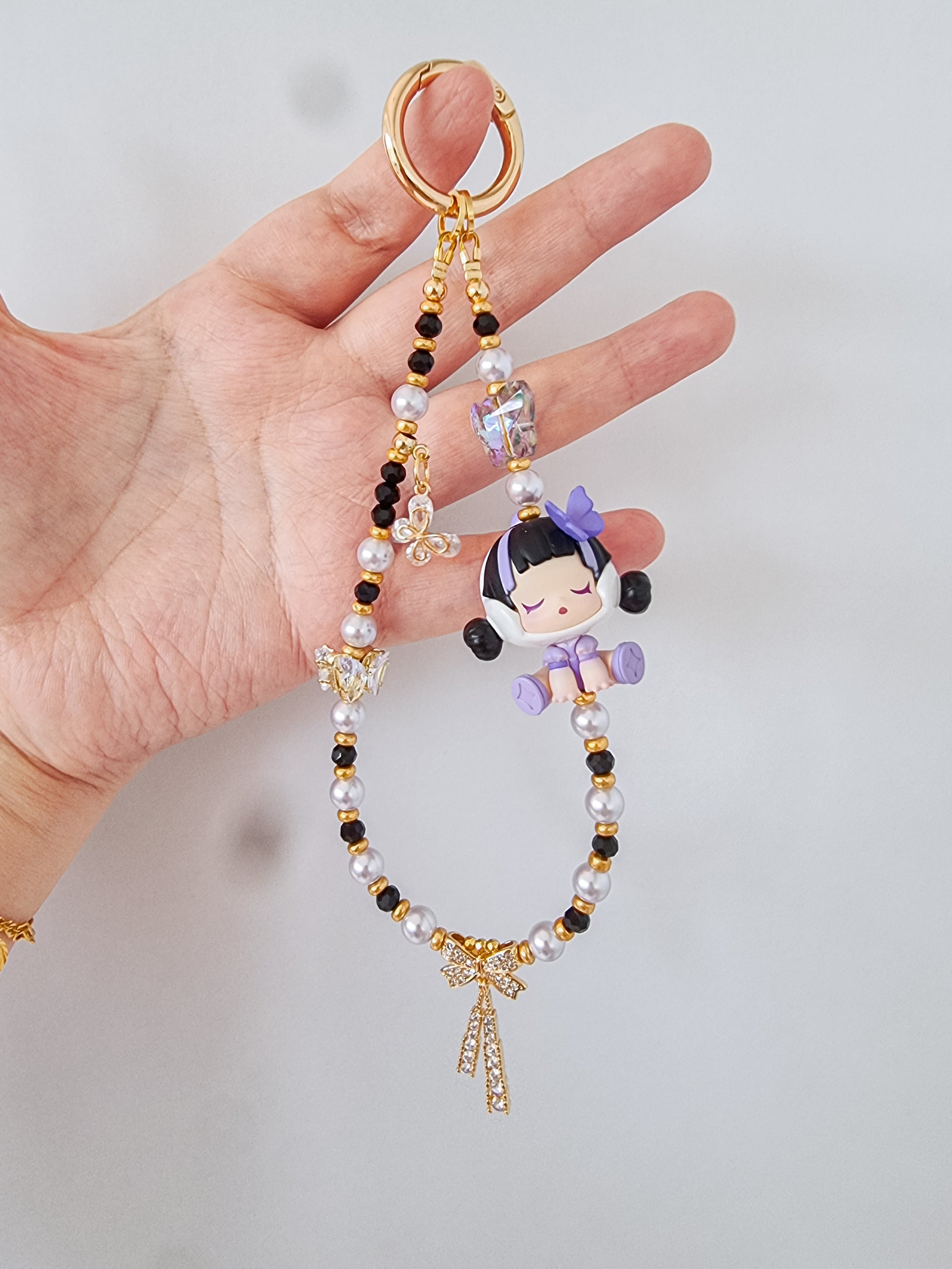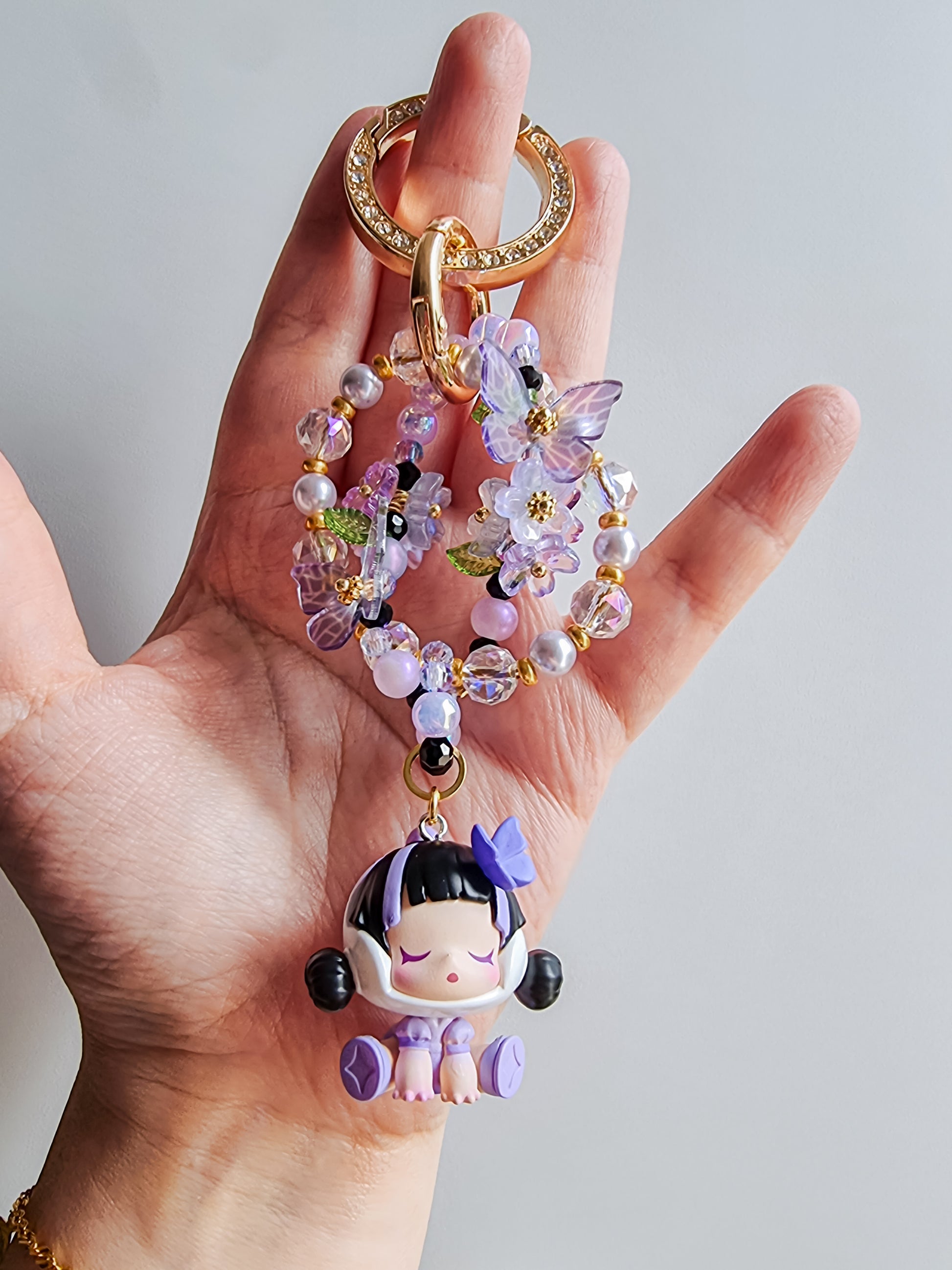 Made with glass pearls, acrylic flowers and butterflies